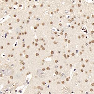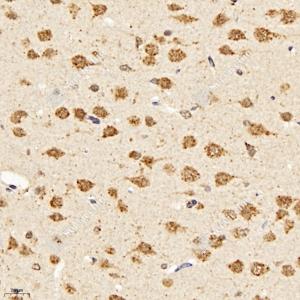 IHC检测UBE3A蛋白(货号 GB112462). 样品: 小鼠脑, 4%多聚甲醛 (货号G1101) 固定12-24小时. 抗原修复: 柠檬酸抗原修复液(干粉, pH 6.0) (G1201), 98℃, 20分钟. —抗: 1: 500稀释, 4℃ 孵育过夜. 二抗: HRP标记山羊抗兔IgG (H+L) (货号GB23303), 1: 200稀释, 室温孵育1小时. |