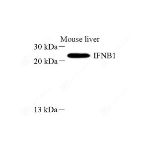 WB检测Interferon beta蛋白(货号 GB115438). 样品: 经RIPA裂解液(货号G2002)处理的蛋白质. 封闭: 封闭: 3%脱脂牛奶(货号GC310001)溶于TBST溶液, 室温孵育1小时. —抗: 1: 800稀释, 4℃ 孵育过夜. 二抗: HRP标记山羊抗兔IgG (H+L) (货号GB23303), 1: 5000稀释, 室温孵育1小时. |