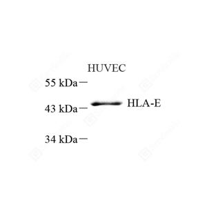 WB检测HLA E蛋白(货号 GB112510). 样品: 经RIPA裂解液(货号G2002)处理的蛋白质. 封闭: 封闭: 3%脱脂牛奶(货号GC310001)溶于TBST溶液, 室温孵育1小时. —抗: 1: 350稀释, 4℃ 孵育过夜. 二抗: HRP标记山羊抗兔IgG (H+L) (货号GB23303), 1: 5000稀释, 室温孵育1小时. |