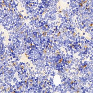 IHC检测FCN1/M-Ficolin蛋白(货号 GB113616). 样品: 小鼠骨, 4%多聚甲醛 (货号G1101) 固定12-24小时. 抗原修复: 柠檬酸抗原修复液(干粉, pH 6.0) (G1201), 98℃, 20分钟. —抗: 1: 2400稀释, 4℃ 孵育过夜. 二抗: HRP标记山羊抗兔IgG (H+L) (货号GB23303), 1: 200稀释, 室温孵育1小时. |
