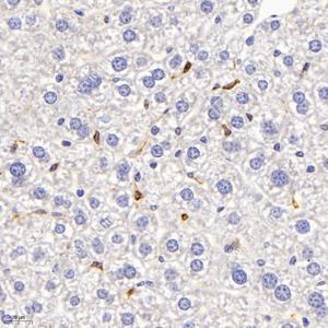 IHC检测FCN1/M-Ficolin蛋白(货号 GB113616). 样品: 小鼠肝, 4%多聚甲醛 (货号G1101) 固定12-24小时. 抗原修复: 柠檬酸抗原修复液(干粉, pH 6.0) (G1201), 98℃, 20分钟. —抗: 1: 2400稀释, 4℃ 孵育过夜. 二抗: HRP标记山羊抗兔IgG (H+L) (货号GB23303), 1: 200稀释, 室温孵育1小时. |