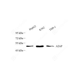 | WB 免疫印迹 | 人 | 1: 500-1: 800 | HepG2细胞, K562细胞, THP-1细胞 |