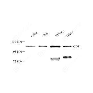 | WB 免疫印迹 | 人 | 1: 300-1: 600 | Jurkat细胞, Raji细胞, HUVEC细胞 |