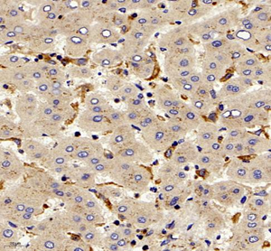 | Immunohistochemistry of paraffin embedded human liver using TIE2 (GB11301) at dilution of 1:200 (400x lens) |