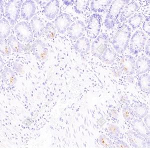 IHC检测NALP4蛋白(货号 GB112709). 样品: 大鼠肠炎, 4%多聚甲醛 (货号G1101) 固定12-24小时. 抗原修复: 柠檬酸抗原修复液(干粉, pH 6.0) (G1201), 98℃, 20分钟. —抗: 1: 4800稀释, 4℃ 孵育过夜. 二抗: HRP标记山羊抗兔IgG (H+L) (货号GB23303), 1: 200稀释, 室温孵育1小时. |