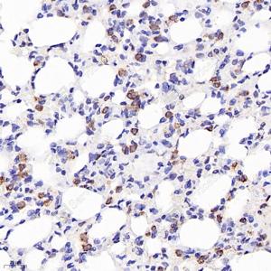 | IHC检测Prosurfactant Protein C蛋白(货号 GB114059). 样品: 小鼠肺, 4%多聚甲醛 (货号G1101) 固定12-24小时. 抗原修复: 柠檬酸抗原修复液(干粉, pH 6.0) (G1201), 98℃, 20分钟. —抗: 1: 1000稀释, 4℃ 孵育过夜. 二抗: HRP标记山羊抗兔IgG (H+L) (货号GB23303), 1: 200稀释, 室温孵育1小时. |