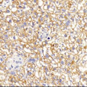 | IHC检测Fibrinogen alpha chain蛋白(货号 GB112088). 样品: 小鼠肝, 4%多聚甲醛 (货号G1101) 固定12-24小时. 抗原修复: 柠檬酸抗原修复液(干粉, pH 6.0) (G1201), 98℃, 20分钟. —抗: 1: 150稀释, 4℃ 孵育过夜. 二抗: HRP标记山羊抗兔IgG (H+L) (货号GB23303), 1: 200稀释, 室温孵育1小时. |