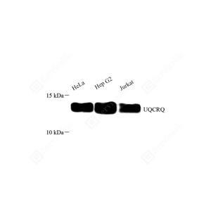 | WB检测UQCRQ蛋白(货号 GB115003). 样品: 经RIPA裂解液(货号G2002)处理的蛋白质. 封闭: 3%脱脂牛奶(货号GC310001)溶于TBST溶液, 室温孵育1小时. —抗: 1: 2000稀释, 4℃ 孵育过夜. 二抗: HRP标记山羊抗兔IgG (H+L) (货号GB23303), 1: 5000稀释, 室温孵育1小时. |