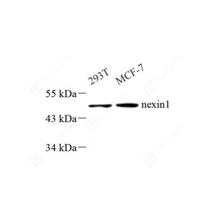WB检测SERPINE2/PN-1蛋白(货号 GB112337). 样品: 经RIPA裂解液(货号G2002)处理的蛋白质. 封闭: 封闭: 3%脱脂牛奶(货号GC310001)溶于TBST溶液, 室温孵育1小时. —抗: 1: 500稀释, 4℃ 孵育过夜. 二抗: HRP标记山羊抗兔IgG (H+L) (货号GB23303), 1: 5000稀释, 室温孵育1小时. |