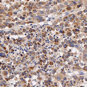 IHC检测INF2蛋白(货号 GB115034). 样品: 人乳腺癌, 4%多聚甲醛 (货号G1101) 固定12-24小时. 抗原修复: Tris-EDTA抗原修复液(pH 9.0) (G1203), 98℃, 20分钟. —抗: 1: 600稀释, 4℃ 孵育过夜. 二抗: HRP标记山羊抗兔IgG (H+L) (货号GB23303), 1: 200稀释, 室温孵育1小时. |