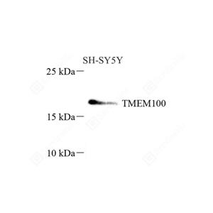 WB检测TMEM100蛋白(货号 GB114244). 样品: 经RIPA裂解液(货号G2002)处理的蛋白质. 封闭: 封闭: 3%脱脂牛奶(货号GC310001)溶于TBST溶液, 室温孵育1小时. —抗: 1: 300稀释, 4℃ 孵育过夜. 二抗: HRP标记山羊抗兔IgG (H+L) (货号GB23303), 1: 5000稀释, 室温孵育1小时. |