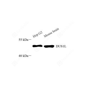 WB检测DUS1L蛋白(货号 GB114676). 样品: 经RIPA裂解液(货号G2002)处理的蛋白质. 封闭: 封闭: 3%脱脂牛奶(货号GC310001)溶于TBST溶液, 室温孵育1小时. —抗: 1: 1500稀释, 4℃ 孵育过夜. 二抗: HRP标记山羊抗兔IgG (H+L) (货号GB23303), 1: 5000稀释, 室温孵育1小时. |