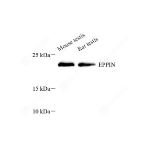 WB检测EPPIN蛋白(货号 GB114566). 样品: 经RIPA裂解液(货号G2002)处理的蛋白质. 封闭: 封闭: 3%脱脂牛奶(货号GC310001)溶于TBST溶液, 室温孵育1小时. —抗: 1: 500稀释, 4℃ 孵育过夜. 二抗: HRP标记山羊抗兔IgG (H+L) (货号GB23303), 1: 5000稀释, 室温孵育1小时. |