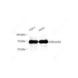 WB检测FDX-ACDB domain-containing protein 1蛋白(货号 GB115260). 样品: 经RIPA裂解液(货号G2002)处理的蛋白质. 封闭: 封闭: 3%脱脂牛奶(货号GC310001)溶于TBST溶液, 室温孵育1小时. —抗: 1: 1000稀释, 4℃ 孵育过夜. 二抗: HRP标记山羊抗兔IgG (H+L) (货号GB23303), 1: 5000稀释, 室温孵育1小时. |