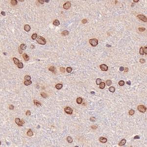 IHC检测LR8蛋白(货号 GB114874). 样品: 大鼠脑, 4%多聚甲醛 (货号G1101) 固定12-24小时. 抗原修复: Tris-EDTA抗原修复液(pH 9.0) (G1203), 98℃, 20分钟. —抗: 1: 2000稀释, 4℃ 孵育过夜. 二抗: HRP标记山羊抗兔IgG (H+L) (货号GB23303), 1: 200稀释, 室温孵育1小时. |