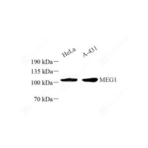 WB检测PPP4R1蛋白(货号 GB115667). 样品: 经RIPA裂解液(货号G2002)处理的蛋白质. 封闭: 3%脱脂牛奶(货号GC310001)溶于TBST溶液, 室温孵育1小时. —抗: 1: 2000稀释, 4℃ 孵育过夜. 二抗: HRP标记山羊抗兔IgG (H+L) (货号GB23303), 1: 5000稀释, 室温孵育1小时. |