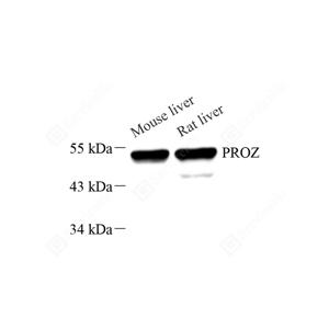 WB检测Protein Z蛋白(货号 GB113510). 样品: 经RIPA裂解液(货号G2002)处理的蛋白质. 封闭: 封闭: 3%脱脂牛奶(货号GC310001)溶于TBST溶液, 室温孵育1小时. —抗: 1: 1000稀释, 4℃ 孵育过夜. 二抗: HRP标记山羊抗兔IgG (H+L) (货号GB23303), 1: 5000稀释, 室温孵育1小时. |