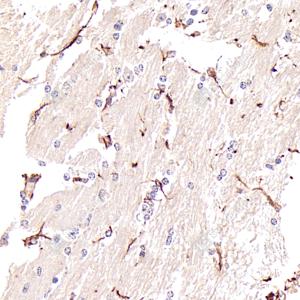 IHC检测Protein FAM131B蛋白(货号 GB115307). 样品: 小鼠脑, 4%多聚甲醛 (货号G1101) 固定12-24小时. 抗原修复: Tris-EDTA抗原修复液(pH 9.0) (G1203), 98℃, 20分钟. —抗: 1: 700稀释, 4℃ 孵育过夜. 二抗: HRP标记山羊抗兔IgG (H+L) (货号GB23303), 1: 200稀释, 室温孵育1小时. |