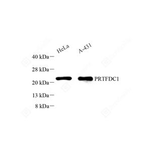WB检测PRTFDC1蛋白(货号 GB115648). 样品: 经RIPA裂解液(货号G2002)处理的蛋白质. 封闭: 3%脱脂牛奶(货号GC310001)溶于TBST溶液, 室温孵育1小时. —抗: 1: 500稀释, 4℃ 孵育过夜. 二抗: HRP标记山羊抗兔IgG (H+L) (货号GB23303), 1: 5000稀释, 室温孵育1小时. |