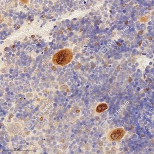 IHC检测TMEM177蛋白(货号 GB113343). 样品: 小鼠骨, 4%多聚甲醛 (货号G1101) 固定12-24小时. 抗原修复: 柠檬酸抗原修复液(干粉, pH 6.0) (G1201), 98℃, 20分钟. —抗: 1: 900稀释, 4℃ 孵育过夜. 二抗: HRP标记山羊抗兔IgG (H+L) (货号GB23303), 1: 200稀释, 室温孵育1小时. |