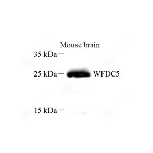 WB检测WFDC5蛋白(货号 GB115325). 样品: 经RIPA裂解液(货号G2002)处理的蛋白质. 封闭: 封闭: 3%脱脂牛奶(货号GC310001)溶于TBST溶液, 室温孵育1小时. —抗: 1: 1000稀释, 4℃ 孵育过夜. 二抗: HRP标记山羊抗兔IgG (H+L) (货号GB23303), 1: 5000稀释, 室温孵育1小时. |