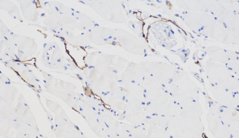 | Immunohistochemistry analysis of paraffin-embedded mouse muscle using LYVE1 (GB11127) at dilution of 1:2000 |