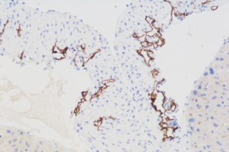 | Immunofluorescence of paraffin embedded mouse duodenum using LYVE-1 (GB11127) at dilution of 1: 2000 |