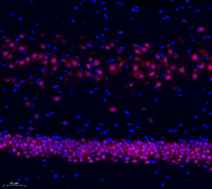| Immunofluorescent analysis of paraformaldehyde-fixed rat hippocampus using NeuN (GB11138) at dilution of 1:1000 |
