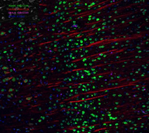 | Immunofluorescent analysis of paraformaldehyde-fixed rat brain using NeuN (GB11138) (green) + IBA-1 (GB12105) (spred) + MAP2 (GB11128-2) (red) and Dapi in blue at dilution of 1:1000 |