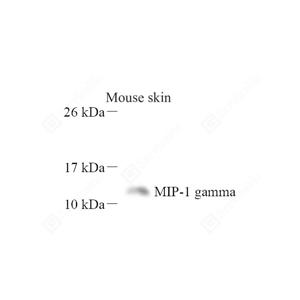 WB检测Macrophase Inflammation Protein 1 gamma蛋白(货号 GB112361). 样品: 经RIPA裂解液(货号G2002)处理的蛋白质. 封闭: 封闭: 3%脱脂牛奶(货号GC310001)溶于TBST溶液, 室温孵育1小时. —抗: 1: 500稀释, 4℃ 孵育过夜. 二抗: HRP标记山羊抗兔IgG (H+L) (货号GB23303), 1: 5000稀释, 室温孵育1小时. |