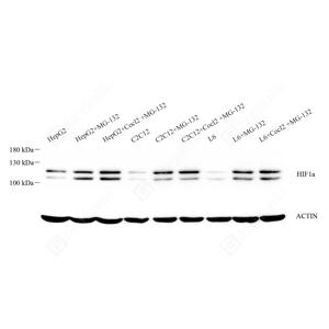 WB检测HIF-1 alpha蛋白(货号 GB114936). 样品: 经RIPA裂解液(货号G2002)处理的蛋白质. 封闭: 封闭: 3%脱脂牛奶(货号GC310001)溶于TBST溶液, 室温孵育1小时. —抗: 1: 300稀释, 4℃ 孵育过夜. 二抗: HRP标记山羊抗兔IgG (H+L) (货号GB23303), 1: 5000稀释, 室温孵育1小时. |