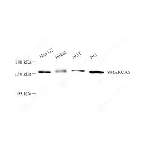 SMARCA5, also named as SNF2H or WCRF135, is a 1052 amino acid protein, which localizes in nucleus and is overexpressed in CD34-positive erythrocyte progenitor cells in acute myeloid leukemia. SMARCA5 is one of the most conserved chromatin remodeling factors. It exists in a variety of oligosubunit complexes that move DNA with respect to the histone octamer to generate regularly spaced nucleosomal arrays. Smarca5 interacts with different accessory proteins and represents a molecular motor for DNA replication, repair, and transcription.