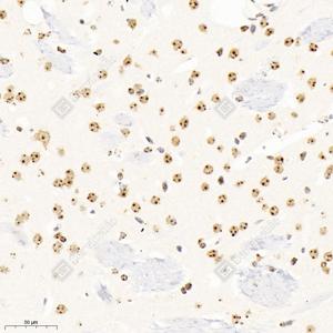 IHC检测KMT3A/HYPB/HIF-1蛋白(货号 GB113441). 样品: 小鼠脑, 4%多聚甲醛 (货号G1101) 固定12-24小时. 抗原修复: Tris-EDTA抗原修复液(pH 9.0) (G1203), 98℃, 20分钟. —抗: 1: 1800稀释, 4℃ 孵育过夜. 二抗: HRP标记山羊抗兔IgG (H+L) (货号GB23303), 1: 200稀释, 室温孵育1小时. |