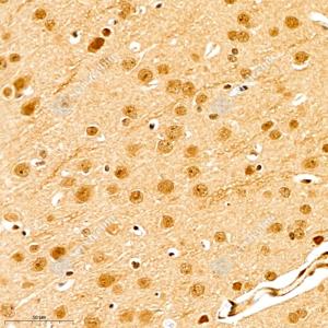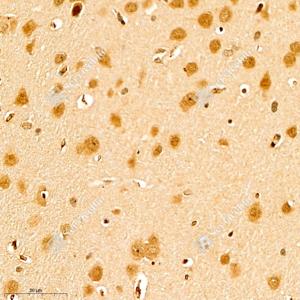 IHC检测SRC3蛋白(货号 GB111066). 样品: 大鼠脑, 4%多聚甲醛 (货号G1101) 固定12-24小时. 抗原修复: 柠檬酸抗原修复液(干粉, pH 6.0) (G1201), 98℃, 20分钟. —抗: 1: 1000稀释, 4℃ 孵育过夜. 二抗: HRP标记山羊抗兔IgG (H+L) (货号GB23303), 1: 200稀释, 室温孵育1小时. |
