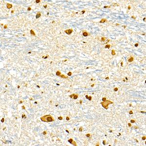 IHC检测ARD1A蛋白(货号 GB11808). 样品: 大鼠小脑, 4%多聚甲醛 (货号G1101) 固定12-24小时. 抗原修复: 柠檬酸抗原修复液(干粉, pH 6.0) (G1201), 98℃, 20分钟. —抗: 1: 1500稀释, 4℃ 孵育过夜. 二抗: HRP标记山羊抗兔IgG (H+L) (货号GB23303), 1: 200稀释, 室温孵育1小时. |