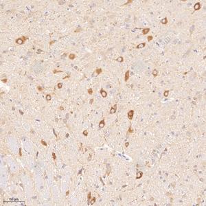 IHC检测GABA A Receptor alpha 1蛋白(货号 GB11716). 样品: 大鼠脑, 4%多聚甲醛 (货号G1101) 固定12-24小时. 抗原修复: 柠檬酸抗原修复液(干粉, pH 6.0) (G1201), 98℃, 20分钟. —抗: 1: 300稀释, 4℃ 孵育过夜. 二抗: HRP标记山羊抗兔IgG (H+L) (货号GB23303), 1: 200稀释, 室温孵育1小时. |