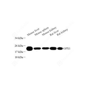 WB检测GPX1蛋白(货号 GB11291). 样品: 经RIPA裂解液(货号G2002)处理的蛋白质. 封闭: 封闭: 3%脱脂牛奶(货号GC310001)溶于TBST溶液, 室温孵育1小时. —抗: 1: 500稀释, 4℃ 孵育过夜. 二抗: HRP标记山羊抗兔IgG (H+L) (货号GB23303), 1: 5000稀释, 室温孵育1小时. |