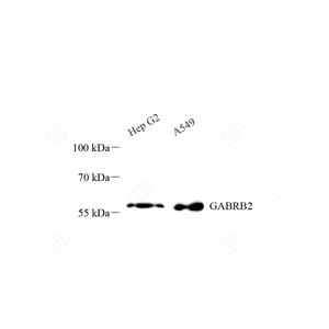 WB检测GABA A Receptor beta 2/GABRB2蛋白(货号 GB114791). 样品: 经RIPA裂解液(货号G2002)处理的蛋白质. 封闭: 3%脱脂牛奶(货号GC310001)溶于TBST溶液, 室温孵育1小时. —抗: 1: 1500稀释, 4℃ 孵育过夜. 二抗: HRP标记山羊抗兔IgG (H+L) (货号GB23303), 1: 5000稀释, 室温孵育1小时. |