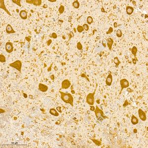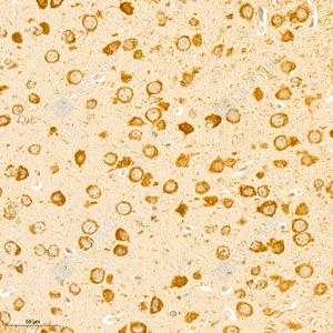 IHC检测Ionotropic Glutamate receptor 2蛋白(货号 GB111578). 样品: 小鼠脑, 4%多聚甲醛 (货号G1101) 固定12-24小时. 抗原修复: 柠檬酸抗原修复液(干粉, pH 6.0) (G1201), 98℃, 20分钟. —抗: 1: 400稀释, 4℃ 孵育过夜. 二抗: HRP标记山羊抗兔IgG (H+L) (货号GB23303), 1: 200稀释, 室温孵育1小时. |
