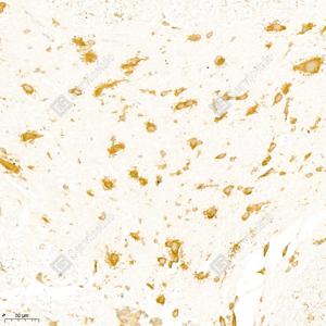 IHC检测GLRB蛋白(货号 GB111535). 样品: 小鼠脊髓, 4%多聚甲醛 (货号G1101) 固定12-24小时. 抗原修复: 柠檬酸抗原修复液(干粉, pH 6.0) (G1201), 98℃, 20分钟. —抗: 1: 1000稀释, 4℃ 孵育过夜. 二抗: HRP标记山羊抗兔IgG (H+L) (货号GB23303), 1: 200稀释, 室温孵育1小时. |