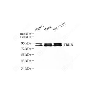 WB检测TrkB蛋白(货号 GB11295-1). 样品: 经RIPA裂解液(货号G2002)处理的蛋白质. 封闭: 封闭: 3%脱脂牛奶(货号GC310001)溶于TBST溶液, 室温孵育1小时. —抗: 1: 500稀释, 4℃ 孵育过夜. 二抗: HRP标记山羊抗兔IgG (H+L) (货号GB23303), 1: 5000稀释, 室温孵育1小时. |