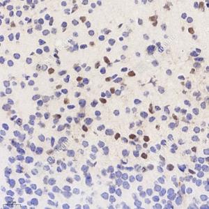 PAX7, also named as HUP1, belongs to the paired homeobox family. It is probable a transcription factor. PAX7 may have a role in myogenesis. A chromosomal aberration involving PAX7 is a cause of rhabdomyosarcoma 2 (RMS2) which also known as alveolar rhabdomyosarcoma. The antibody is specific to PAX7. It will not cross react with other PAX members.
