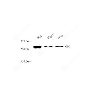 GPI(Glucose-6-phosphate isomerase), which is also named as autocrine motility factor (AMF), phosphoglucose isomerase(PGI), Neuroleukinis(NLK), phosphohexose isomerase(PHI) or sperm antigen 36(SA-36), is a housekeeping cytosolic enzyme that plays a key role in both glycolysis and gluconeogenesis pathways. It is also a multifunctional protein that displays cytokine properties, eliciting mitogenic, motogenic, and differentiation activities, and has been implicated in tumor progression and metastasis . This protein can exsit as a homodimer in the catalytically active form and a monomer in the secreted form .