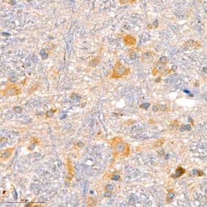 | IHC检测DEGA蛋白(货号 GB111307). 样品: 小鼠小脑, 4%多聚甲醛 (货号G1101) 固定12-24小时. 抗原修复: 柠檬酸抗原修复液(干粉, pH 6.0) (G1201), 98℃, 20分钟. —抗: 1: 1300稀释, 4℃ 孵育过夜. 二抗: HRP标记山羊抗兔IgG (H+L) (货号GB23303), 1: 200稀释, 室温孵育1小时. |