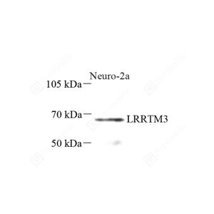 WB检测LRRTM3蛋白(货号 GB115390). 样品: 经RIPA裂解液(货号G2002)处理的蛋白质. 封闭: 封闭: 3%脱脂牛奶(货号GC310001)溶于TBST溶液, 室温孵育1小时. —抗: 1: 1000稀释, 4℃ 孵育过夜. 二抗: HRP标记山羊抗兔IgG (H+L) (货号GB23303), 1: 5000稀释, 室温孵育1小时. |