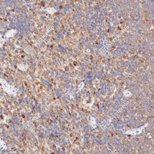 IHC检测NENF蛋白(货号 GB114996). 样品: 大鼠脾, 4%多聚甲醛 (货号G1101) 固定12-24小时. 抗原修复: Tris-EDTA抗原修复液(pH 9.0) (G1203), 98℃, 20分钟. —抗: 1: 800稀释, 4℃ 孵育过夜. 二抗: HRP标记山羊抗兔IgG (H+L) (货号GB23303), 1: 200稀释, 室温孵育1小时. |