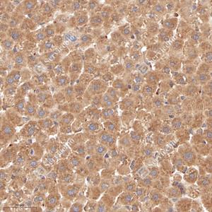 IHC检测NENF蛋白(货号 GB114996). 样品: 大鼠肝, 4%多聚甲醛 (货号G1101) 固定12-24小时. 抗原修复: Tris-EDTA抗原修复液(pH 9.0) (G1203), 98℃, 20分钟. —抗: 1: 800稀释, 4℃ 孵育过夜. 二抗: HRP标记山羊抗兔IgG (H+L) (货号GB23303), 1: 200稀释, 室温孵育1小时. |