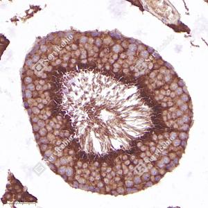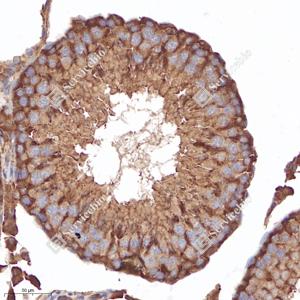 | IHC/IF 免疫组织化学/免疫荧光 | 小鼠, 大鼠 | 1: 800-1: 2400 | 脾, 肝, 睾丸 |
