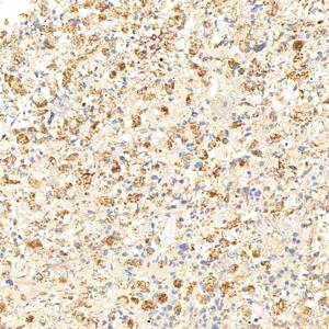 IHC检测Alpha-synuclein蛋白(货号 GB11773). 样品: 人多形性胶质母细胞瘤, 4%多聚甲醛 (货号G1101) 固定12-24小时. 抗原修复: 柠檬酸抗原修复液(干粉, pH 6.0) (G1201), 98℃, 20分钟. —抗: 1: 1000稀释, 4℃ 孵育过夜. 二抗: HRP标记山羊抗兔IgG (H+L) (货号GB23303), 1: 200稀释, 室温孵育1小时. |