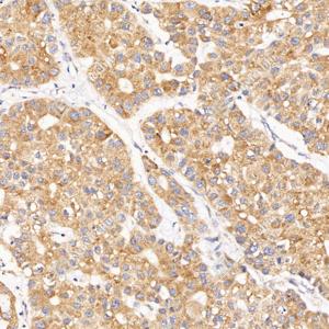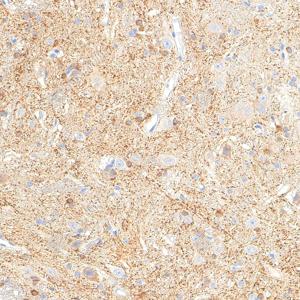 | IHC检测Alpha-synuclein蛋白(货号 GB112945). 样品: 人少突胶质细胞瘤, 4%多聚甲醛 (货号G1101) 固定12-24小时. 抗原修复: 柠檬酸抗原修复液(干粉, pH 6.0) (G1201), 98℃, 20分钟. —抗: 1: 2000稀释, 4℃ 孵育过夜. 二抗: HRP标记山羊抗兔IgG (H+L) (货号GB23303), 1: 200稀释, 室温孵育1小时. |